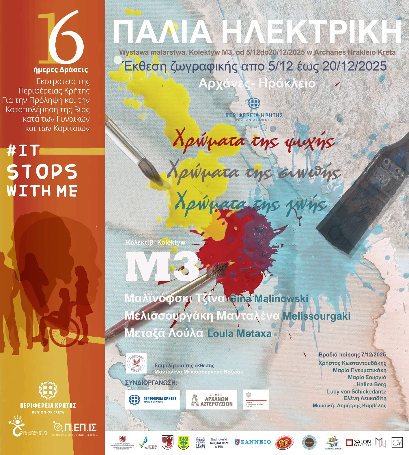 Międzynarodowa wystawa Kolektivu M3 7 grudnia 2025 | Muzeum Palia Ilektriki | Heraklion – Kreta