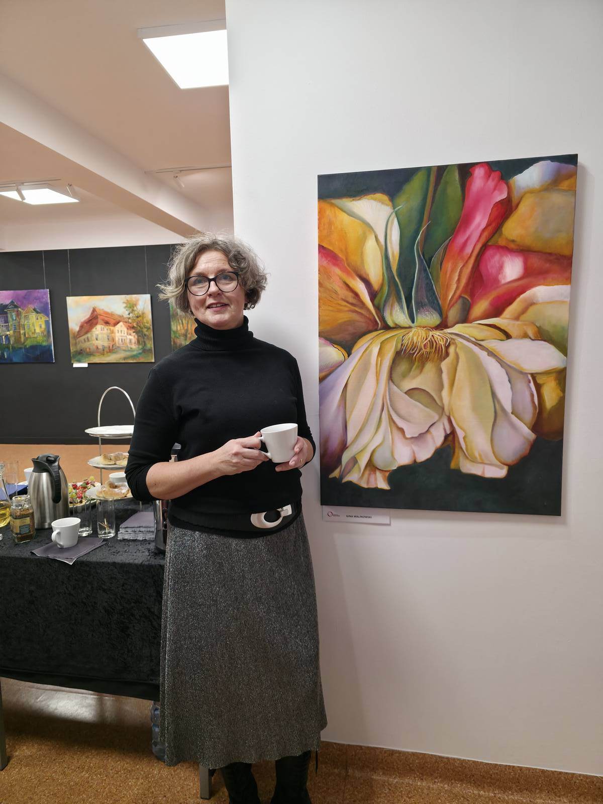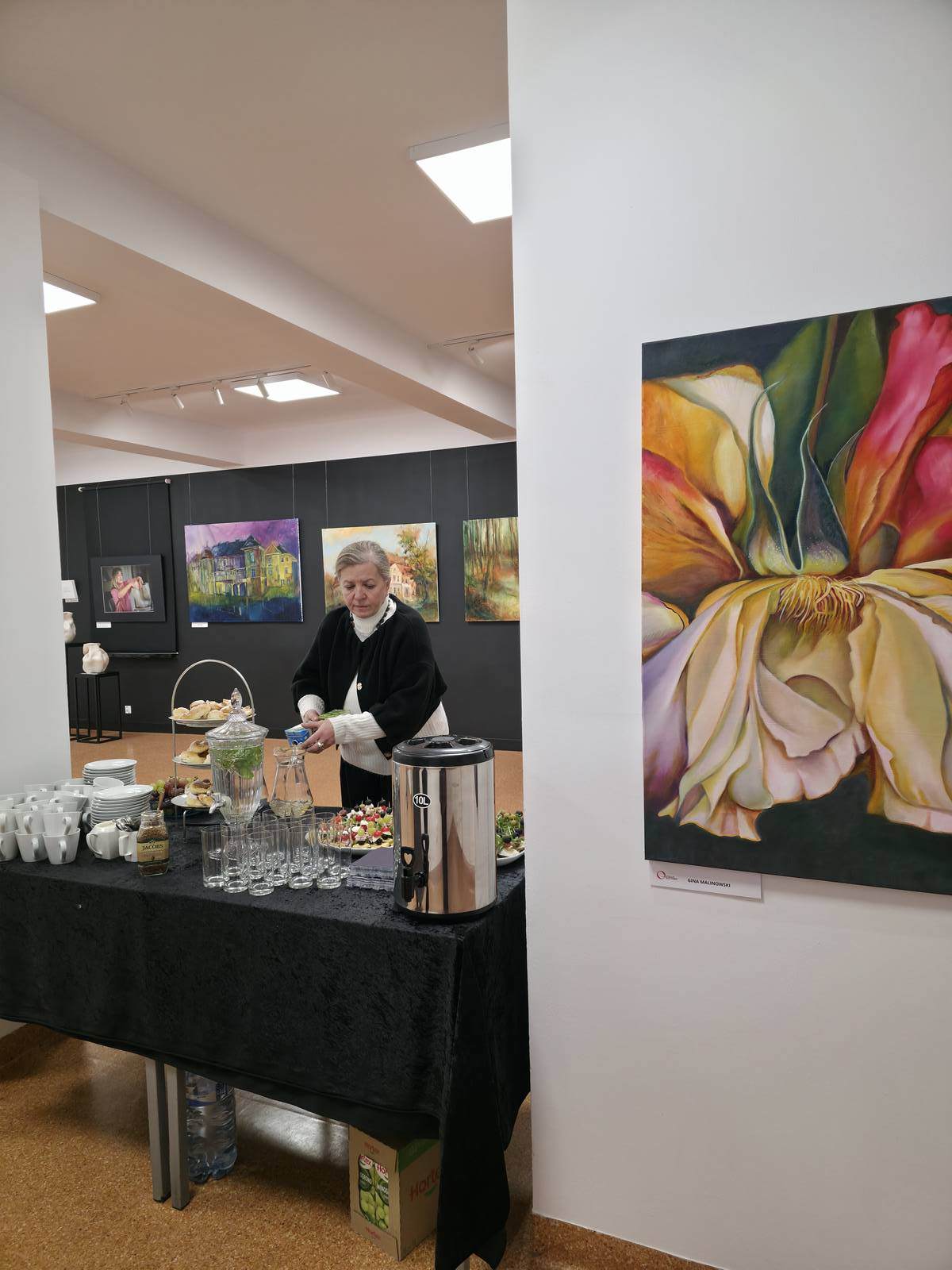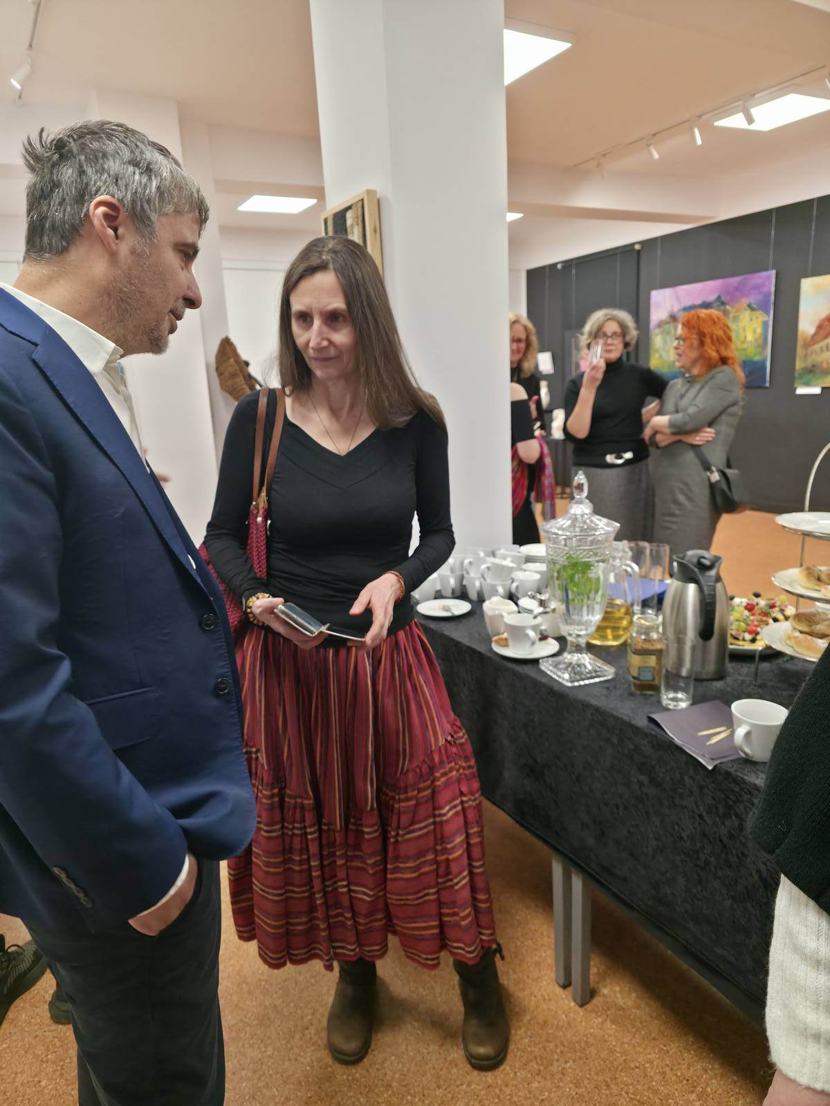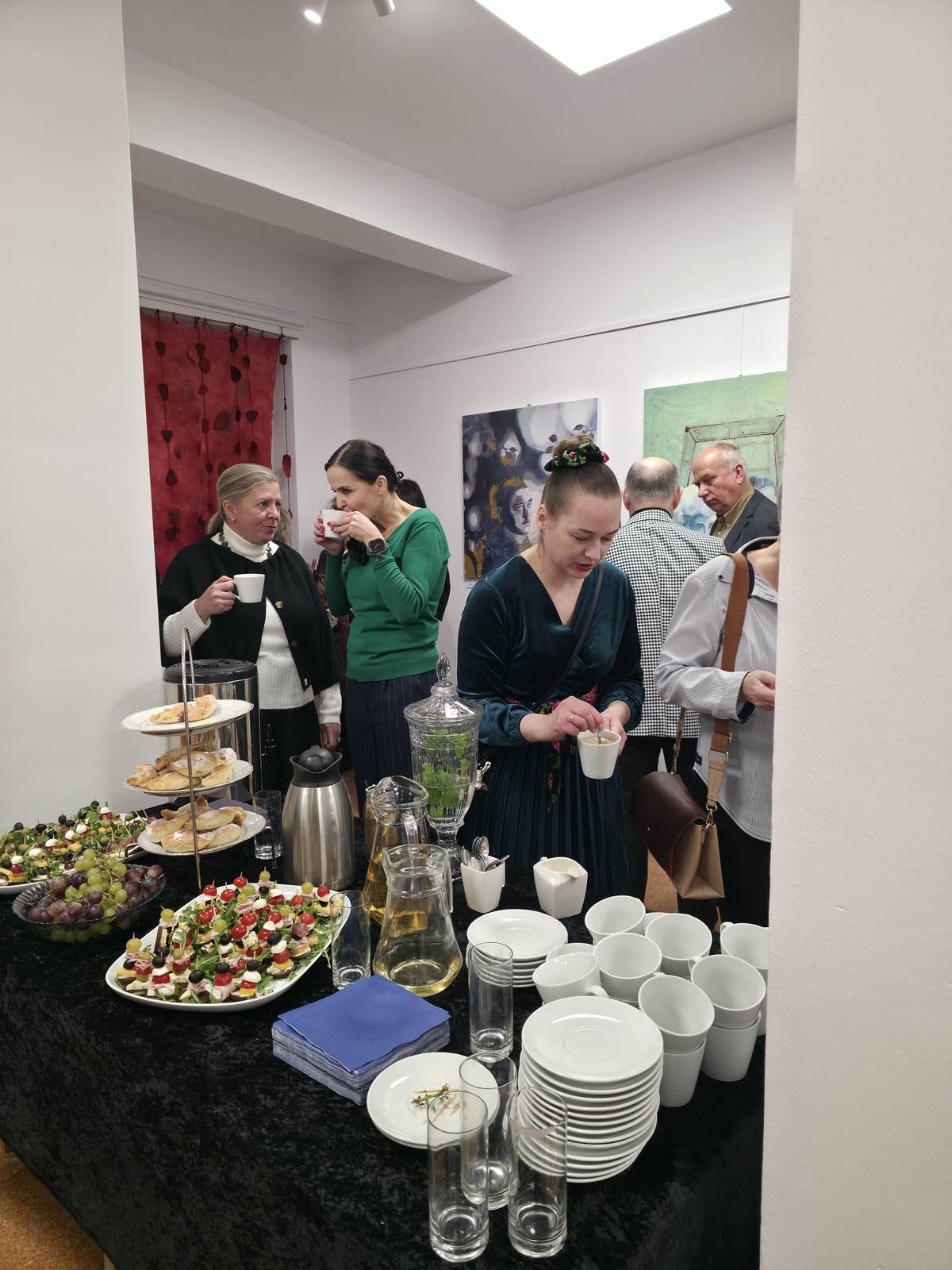Po części oficjalnej uczestnicy mieli okazję do swobodnych rozmów, wymiany wrażeń oraz bezpośredniego kontaktu z prezentowanymi pracami. Spotkaniu towarzyszyła serdeczna, twórcza atmosfera sprzyjająca dialogowi i integracji. Dodatkowym, niezwykle mile przyjętym elementem wieczoru był poczęstunek przygotowany przez członkinie Stowarzyszenia Stacja Kultura, który dopełnił całości wydarzenia.