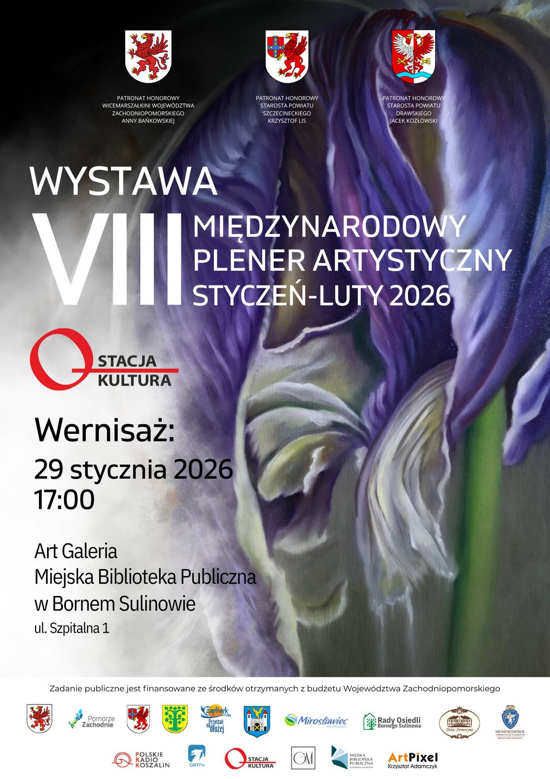Organizatorem wystawy jest zespół Miejskiej Biblioteki Publicznej w Bornem Sulinowie – serdecznie dziękujemy za życzliwość, otwartość oraz ogromne zaangażowanie. Dzięki tej współpracy możliwe jest dzielenie się dorobkiem pleneru z mieszkańcami gminy oraz zapraszanie do bezpośredniego spotkania ze sztuką w przyjaznej, dostępnej dla wszystkich przestrzeni Biblioteki.